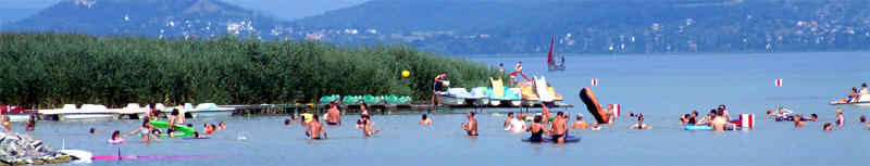 Im Balaton ist das Baden ein Vergnügen, denn die Wassertemperaturen sind in den Sommermonaten zwischen 22 und 28 Grad Celsius, so das auch die Kleinsten den ganzen Tag im Wasser planschen können, ohne sich zu erkälten. Für den Familienurlaub oder für Nichtschwimmer eignet sich besonders das Südufer des Sees. Hier ist das Wasser noch 200 - 300 Meter vom Ufer entfernt kaum einen Meter tief. Aber auch für Segler und Surfer hat der Balaton seinen Reiz.