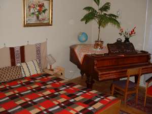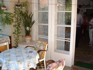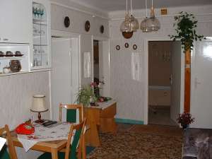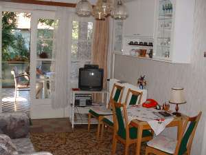 Es handelt sich um ein Einfamilienhaus in einer Nebenstraße 300m vom Strand und Balaton entfernt. Der Eigentümer wohnt im Haus, aber mit separatem Eingang. Das Erdgeschoß wird vermietet. Das Haus ist gemütlich und freundlich eingerichtet. Auf einer Wohnfläche von ca. 80 qm gibt es eine komplett eingerichtete Küche mit Gasherd, Kühlschrank, Kaffeemaschine und Mikrowelle, die Essecke ist angrenzend. Es gibt 3 Schlafzimmer, einmal mit einem Doppelbett, einmal mit einem Doppelbett und einem Einzelbett und ein drittes mit einem Einzelbett. Im gemütlichen Wohnzimmer gibt es TV-Sat außerdem ist ein Klavier vorhanden, das auch benutzt werden darf. Das Badezimmer hat eine Badewanne und das WC ist separat. Das Haus hat eine überdachte Terrasse, ähnlich einem Wintergarten, dort kann man auch die Mahlzeiten einnehmen. Im Garten kann man grillen und Gartenmöbel stehen zur Verfügung. Das Auto kann im Hof geparkt werden. PREISE - Achtung in der A-Saison beträgt die mindest Buchungszeit 1 Woche !!
