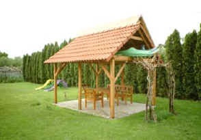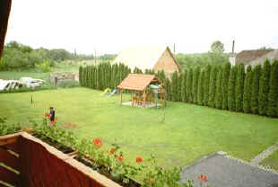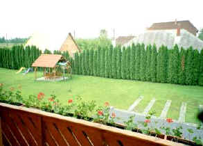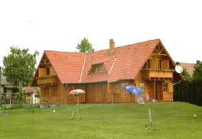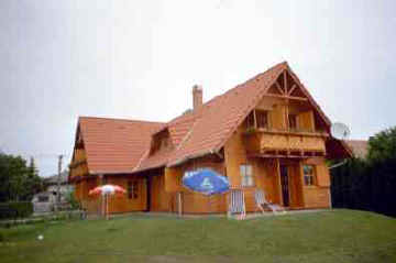Das Haus befindet sich in einer Nebenstraße in ruhiger Lage 500 m vom See entfernt. Dieses wunderschöne Haus wurde im Frühjahr 2002 erbaut. Es befinden sich 2 gleichgroße (ca. 65 qm), und auch ähnlich eingerichtete Appartements für je 4 Personen und 1 Appartement (ca. 100 qm) für 6 Personen im Haus. In den 4 Pers.- App. befinden sich im Erdgeschoss folgende Zimmer: Koch-Essecke mit Mikrowelle, Herd, Kühlschrank etc., Wohnzimmer mit TV-Sat sowie ein Badezimmer mit Dusche und sep. WC. Im Obergeschoss sind 2 Schlafzimmer mit jeweiligem Ausgang zum Balkon. Im 6 Pers.-App. befinden sich im Erdgeschoss folgende Zimmer: großes Wohnzimmer mit TV-Sat, Koch-Essecke mit Mikrowelle, Herd, Kühlschrank, Kaffeemaschine etc., und sep. WC. Im Obergeschoss sind 3 Schlafzimmer mit jeweils für jedes Schlafzimmer Dusche und WC. 2 Schlafzimmer haben Ausgang auf einen Balkon. Das Haus ist umgeben von einem ca. 2000 qm großen, gepflegten Garten, mit überdachtem Grillplatz, Gartenmöbel sind vorhanden. Autos können auf dem Grundstück abgestellt werden. Im Preis inbegriffen: Bei mindestens 7 Tage Buchung steht Ihnen pro App. 1 Tag lang kostenlos ein Tretboot zur Verfügung. Unter der Angebots-Nummer Fenyves 27 können Sie ein 4 Pers.-Appartement buchen.( A ) PREISE - Achtung in der Haupt-Saison beträgt die mindest Buchungszeit 1 Woche !!