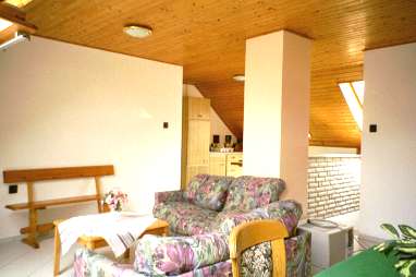 Das Haus befindet sich in einer Nebenstraße in ruhiger Lage ca .500 m vom See entfernt. Vermietet wird in diesem Haus das geräumige Obergeschoss mit ca. 110 qm Wohnfläche. Über einen sep. Eingang erreicht man die Wohnung. Es gibt 3 Schlafzimmer mit jeweils für jedes Schlafzimmer Dusche und WC. Koch-Essecke mit Mikrowelle, Kühlschrank, Herd, Kaffeemaschine etc., Wohnzimmer mit TV-Sat. Alle Zimmer sind gemütlich und geschmackvoll eingerichtet. Im Garten gibt es Gartenmöbel sowie einen Grill. Das Auto kann im Hof abgestellt werden. Der Eigentümer wohnt im Erdgeschoss. EXTRAS: Bei einer Buchung von mindestens 7 Tagen steht Ihnen an einem Tag ein Tretboot kostenlos zur Verfügung. PREISE - Achtung in der Haupt-Saison beträgt die mindest Buchungszeit 1 Woche !!