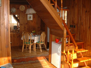 Das Haus hat ca. 70m² Wohnfläche und befindet sich in einer Nebenstraße in ruhiger Lage 300 m vom See entfernt. Im Erdgeschoss ist das stimmungsvoll eingerichtete Wohnzimmer mit angrenzender Essecke und Kochnische, sowie Bad mit Badewanne und WC. Zur Ausstattung gehören 1 Fernseher mit SAT-Anlage, Kochnische mit Elektroherd, Kaffeemaschine und Kühlschrank, eine offene Terrasse zum Garten. Im Obergeschoss befinden sich 2 Schlafzimmer. Ein Schlafzimmer ist mit einem Doppelbett ausgestattet , das zweite Schlafzimmer hat zwei Einzelbetten. Im Garten befindet sich ein Grill und div. Gartenmöbel. Parken ist im Hof möglich. PREISE - Achtung in der A-Saison beträgt die mindest Buchungszeit 1 Woche !!