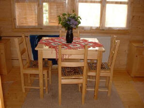 Das Haus befindet sich in einer Nebenstraße in ruhiger Lage 500 m vom See entfernt. Dieses geräumige Holzhaus wurde im Frühjahr 2003 erbaut. Es hat 110 m² und bietet für sechs Personen Platz, in vier Schlafzimmer auf zwei Ebenen verteilt. Im Erdgeschoss befindet sich eine kpl. eingerichtete Küche mit Küchengeräten wie Herd, Kühlschrank, Mikrowelle, Kaffeemaschine, Geschirr usw., Wohnzimmer mit TV-Sat und angrenzendem Essecke, Badezimmer mit Badewanne und WC und ein Schlafzimmer mit Doppelbett. Im Obergeschoss sind weitere drei Schlafzimmer, einmal mit zwei Einzelbetten und zwei Schlafzimmer mit je einem Bett. Auf dem geschlossenem Hof finden Sie div. Gartenmöbel und Grillmöglichkeit. Die zum Haus gehörende Garage kann mitbenutzt werden. Der Hausbesitzer wohnt auf dem Grundstück mit separatem Eingang. PREISE - Achtung in der Haupt-Saison beträgt die mindest Buchungszeit 1 Woche !! Sonderangebot !!! Bei einer Buchung von mindestens zwei Wochen gewähren wir Ihnen 15 % auf den Endmietpreis